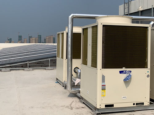 对于学校来说,热水系统是基础中里的基础。因为夏季天气炎热、日照时间长,很多学校为了省钱,一般安装太阳能热水器。这种热水器虽然用起来非常节能、环保、安全,但供水效果却不稳定,“看天吃饭”严重。尤其是现在,正是秋分之后,日照时间缩短,碰到雨水天气,大大影响了太阳能热水器的供水效果。因此近几年来,越来越多的南方学校选择使用“太阳能+空气源”双系统,或直接安装空气源热泵为学校提供热水。比如,徐州汉兴高级中学就使用了“太阳能+空气源”的方式,8台milan米兰超低温20匹热水机组为学校两栋楼,一栋4台,总配90吨的热水。